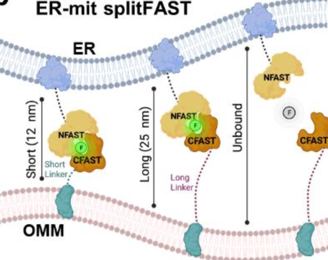 The endoplasmic reticulum-mitochondria junction is one example of those membrane contact sites (MCSs). They hence behave as hubs, allowing cell organelles to coordinate activities. However, the dynamic nature of these sites and their small size hinder analysis by common imaging techniques. In order to overcome these limitations, the authors designed a series of reversible chemogenetic reporters incorporating splitFAST2. They hence could monitor the dynamics of different MCSs at high spatiotemporal resolution, both in vitro and in vivo. As a result, they identified a hitherto unknown pathway involving calcium (Ca2+) signalling! Finally, by integrating Ca2+ -sensing capabilities into splitFAST, they designed PRINCESS (PRobe for INterorganelle Ca 2+ -Exchange Sites based on SplitFAST). As a result, they provide an unprecedented class of reporters detecting MCSs and measuring the associated Ca2+ dynamics using a single biosensor.